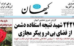 اتهمت صحيفة «كيهان» الإيرانية، المحسوبة عملياً على مكتب المرشد الأعلى علي خامنئي، ما تصفه بـ«جيش الإنترنت التابع للموساد ووكالة الاستخبارات المركزية» بالمسؤولية المباشرة عن مقتل 2427 «شهيداً» خلال موجة الاحتجاجات الأخيرة في البلاد، في عددها الذي حمل تقريراً تحليلياً يُرجع «أحداث الشغب» إلى «التأثر بالدعاية المعادية عبر الفضاء الافتراضي» بدل الاعتراف بدور أجهزة الأمن في القمع.