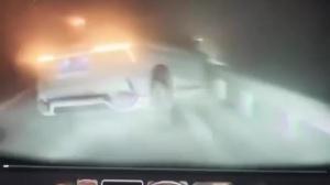 تسلا تتجنب الاصطدام داخل سحابة دخان وغبار كثيف